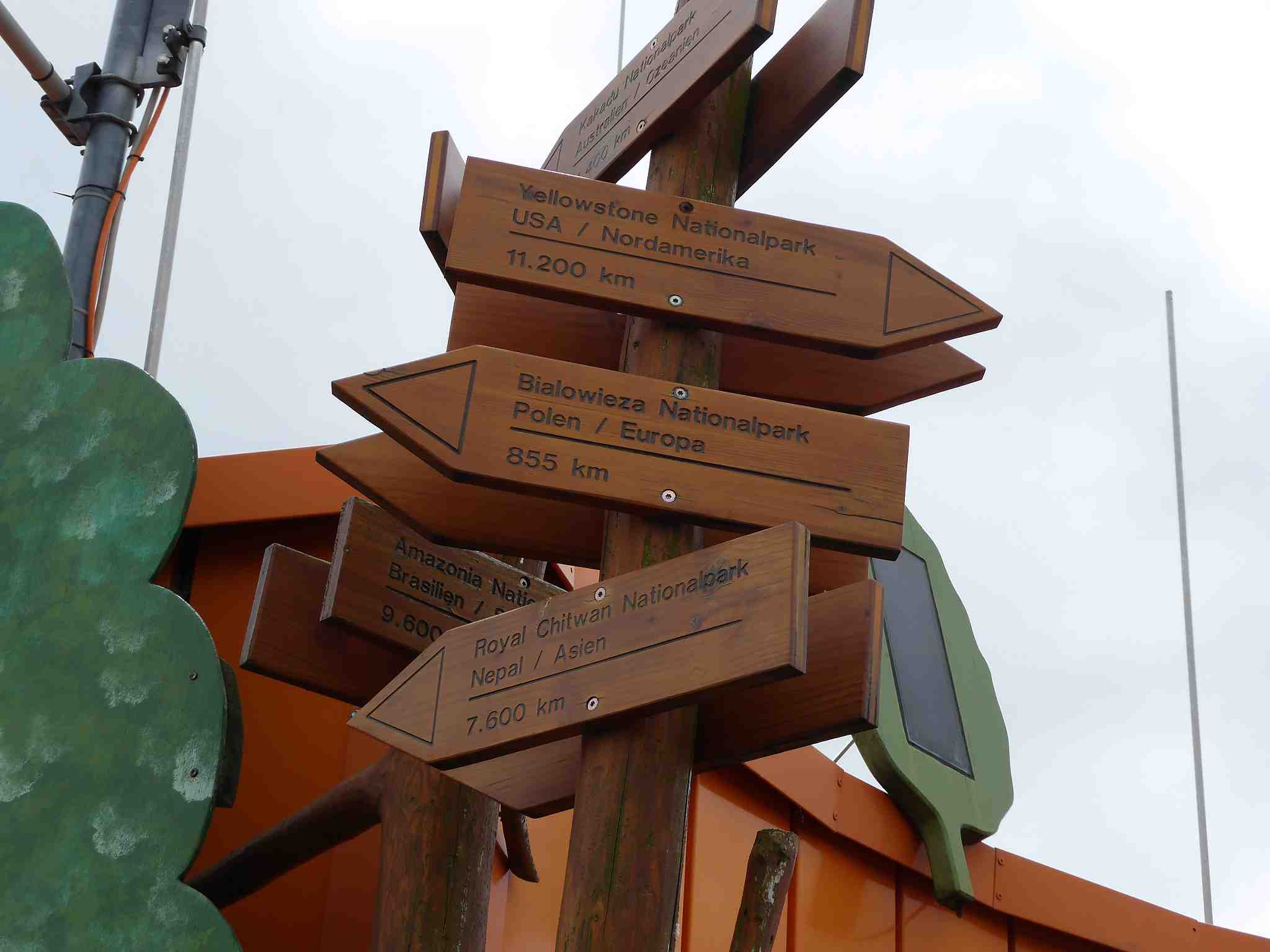 Auf dem Weg von der Kasse zum Start des Baumkronen Pfades läuft man im Wald an dem längsten Baum der Welt lang, der symbolisch angezeigt ist. Er ist 116 Meter hoch und hat einen Umfang von 7 Metern.